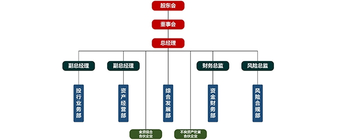 榆林金資實行市場化運作、專業化經營。目前內設5個部門,分別是投行業務部、資產管理部、風控合規部、資金財務部、綜合發展部,擁有20多名員工,主要來自銀行、基金、四大資產管理公司等機構,人員專業素質較強。
